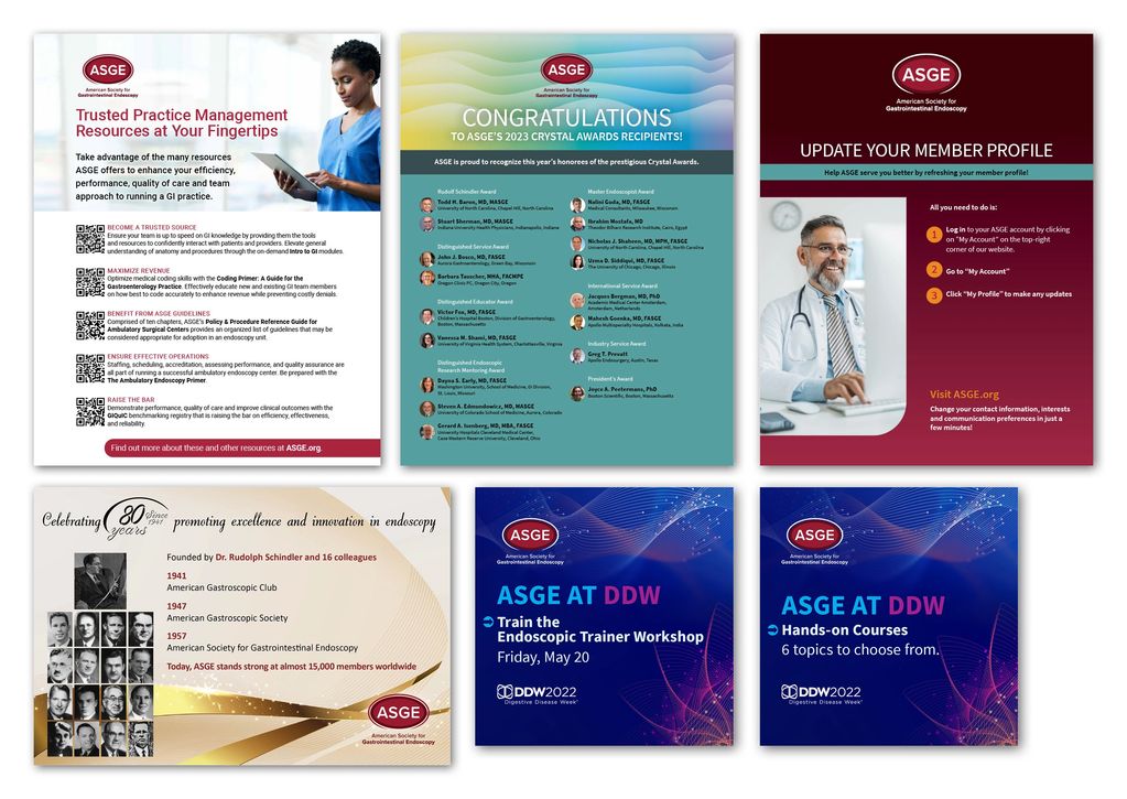 My collaboration with the American Society for Gastrointestinal Endoscopy (ASGE) has been a remarkable journey in creative partnership. Working closely with ASGE, I've had the privilege of breathing life into their vision through compelling digital and print collateral. This encompasses a range of projects, including member appreciation month initiatives, expo booth designs, and the development of impactful collateral materials.
